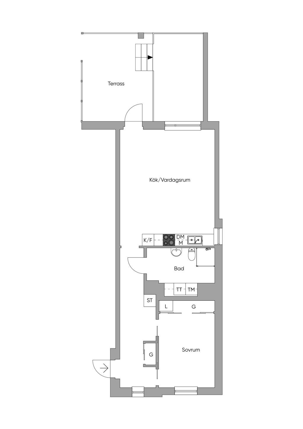 Genomgående tvårummare med underbar terrass in mot lummig innergård.
