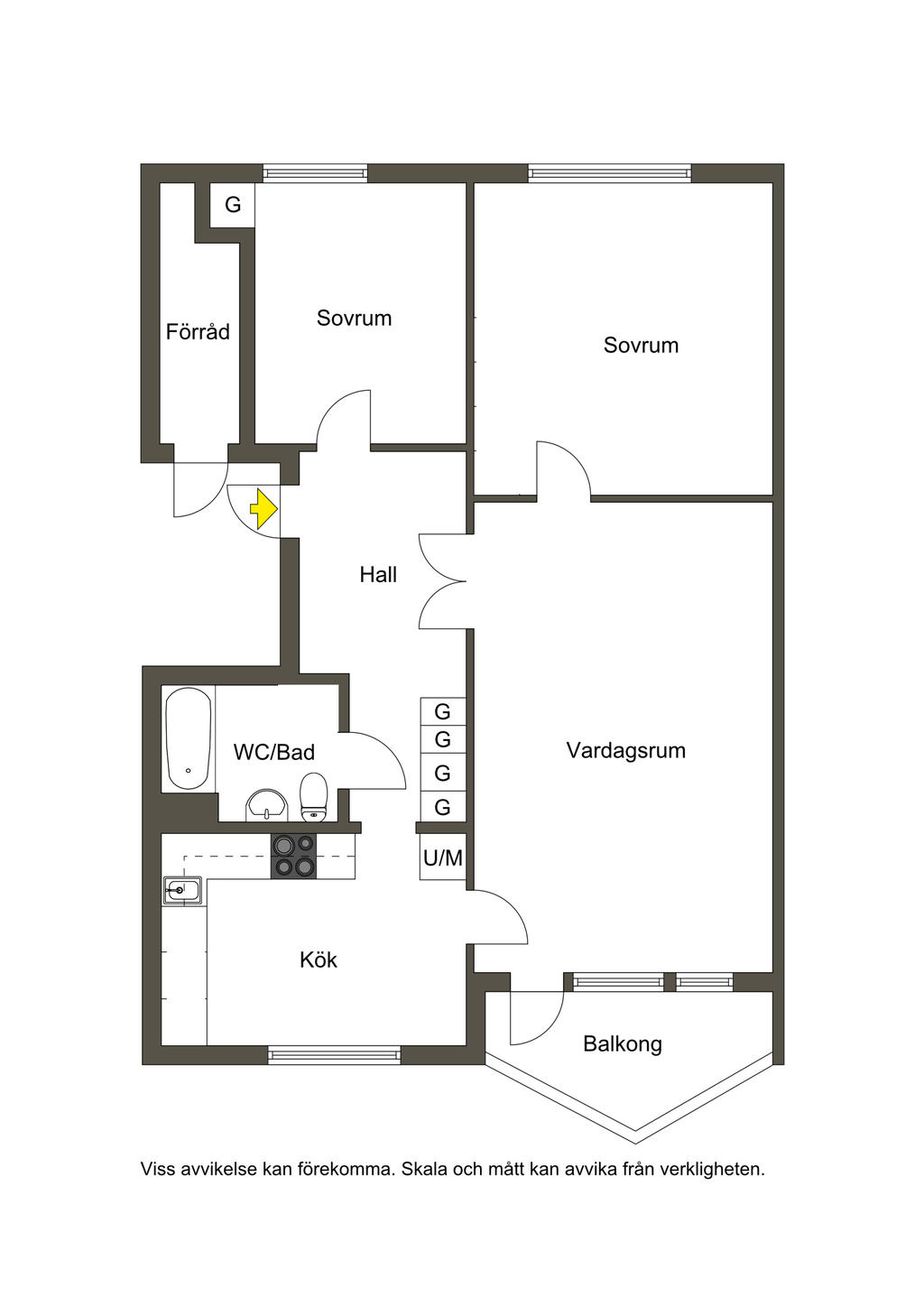 • Rum: 3, varav 2 sovrum