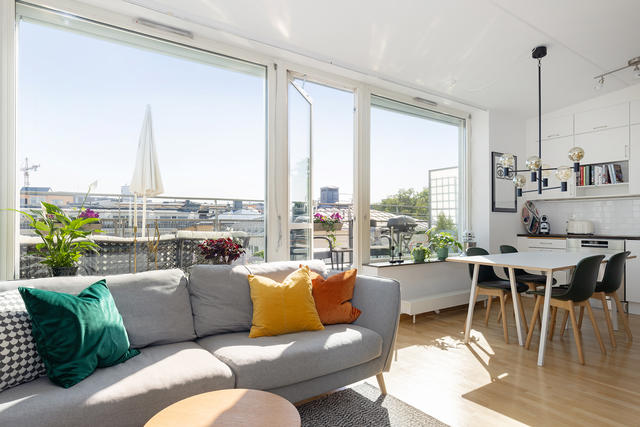 Unik taklägenhet! - Takhöjd om 3 meter. 15 kvm terrass & balkong, sol från morgon till kväll!