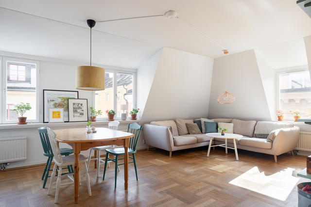 Högst upp i huset med vindskaraktär på attraktiva Mariaberget!