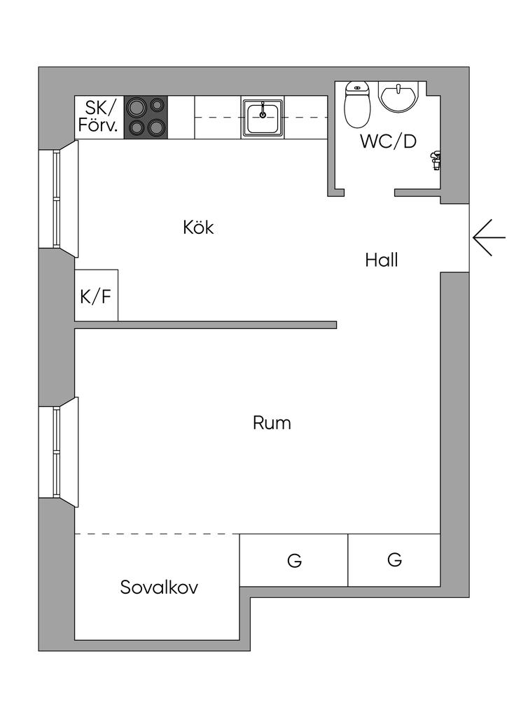 Charmig 1:a i centrala Sundbyberg med högt i tak.
