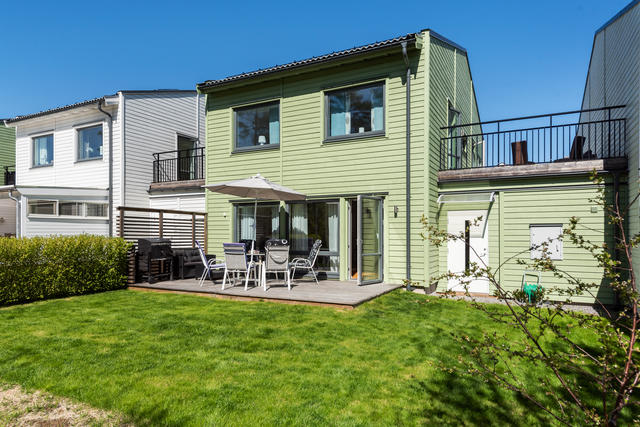 Familjevänligt kedjehus med garage och takterrass i populära Björnövik