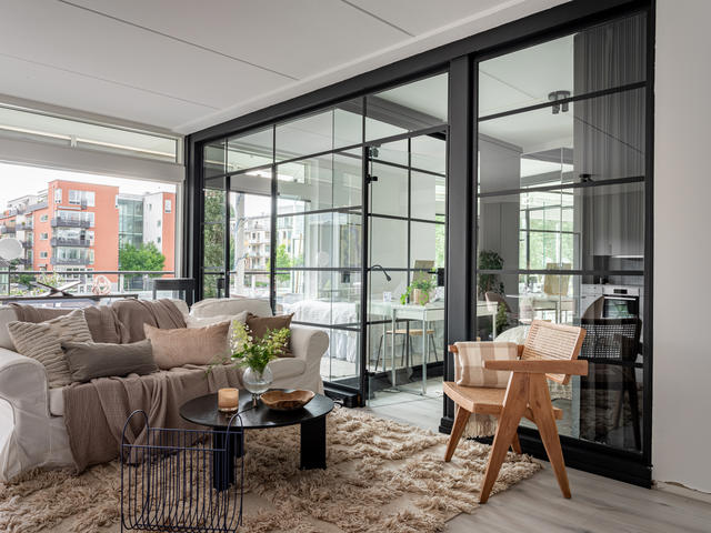 Ljus och välplanerad bostad med generös balkong i soligt söderläge och vacker utsikt mot kanalen.