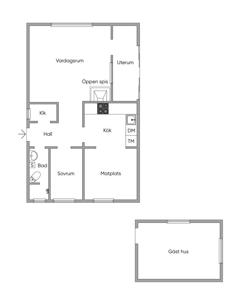 Mysig timmerstuga med gästhus på en stor fin hörntomt i Norra Hagen