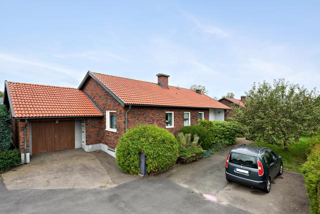 Enplansvilla med källare och vidbyggt garage på hörntomt