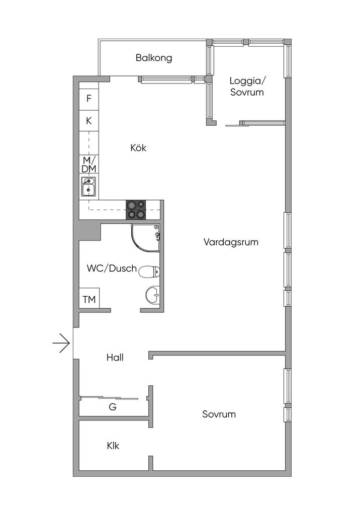 Ljus 2,5:a i gavelläge högt upp i huset med balkong!
