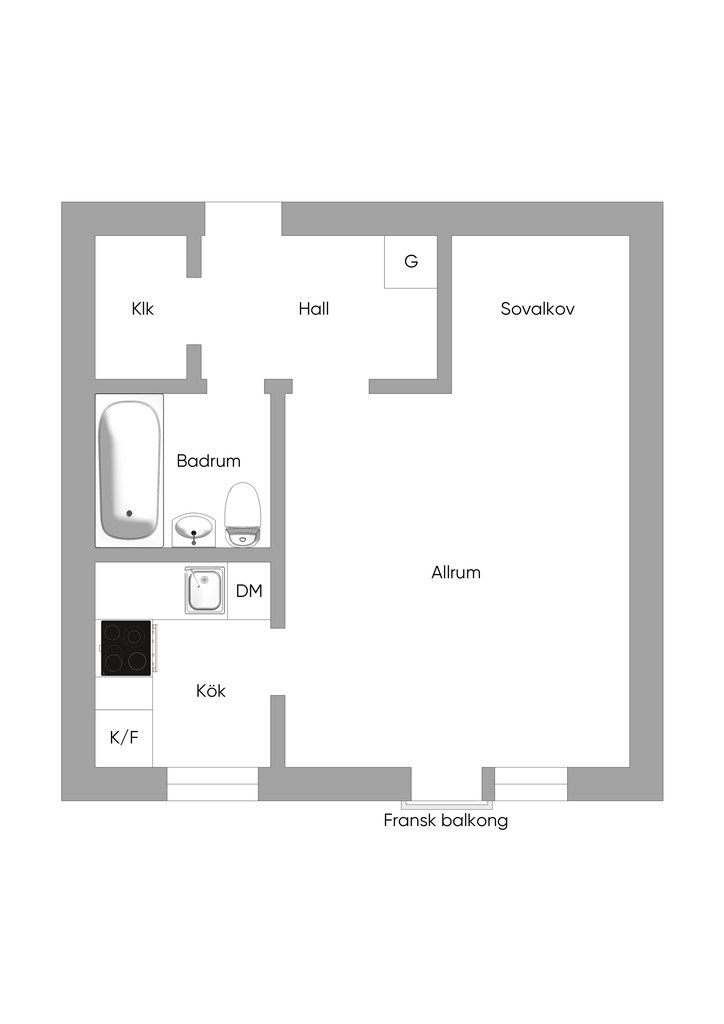 Välplanerad och ljus 1,5:a med fransk balkong.