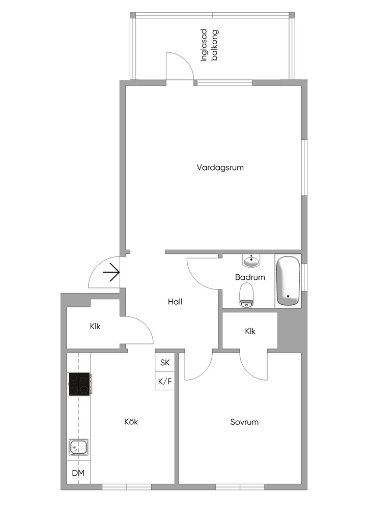 Fin 2;a med stor nybyggd inglasad balkong i fint skick!