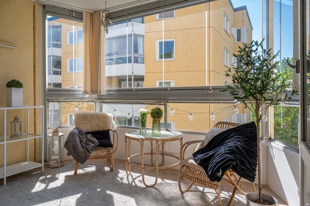 Trivsam trerummare med stor inglasad balkong!