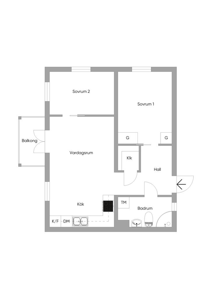 Modern 3:a med öppen planlösning och balkong i västerläge