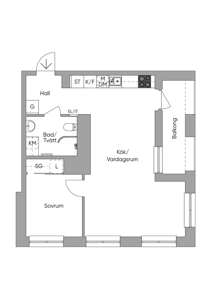 Ljus tvårummare på hörnläge intill Stapelbäddsparken.