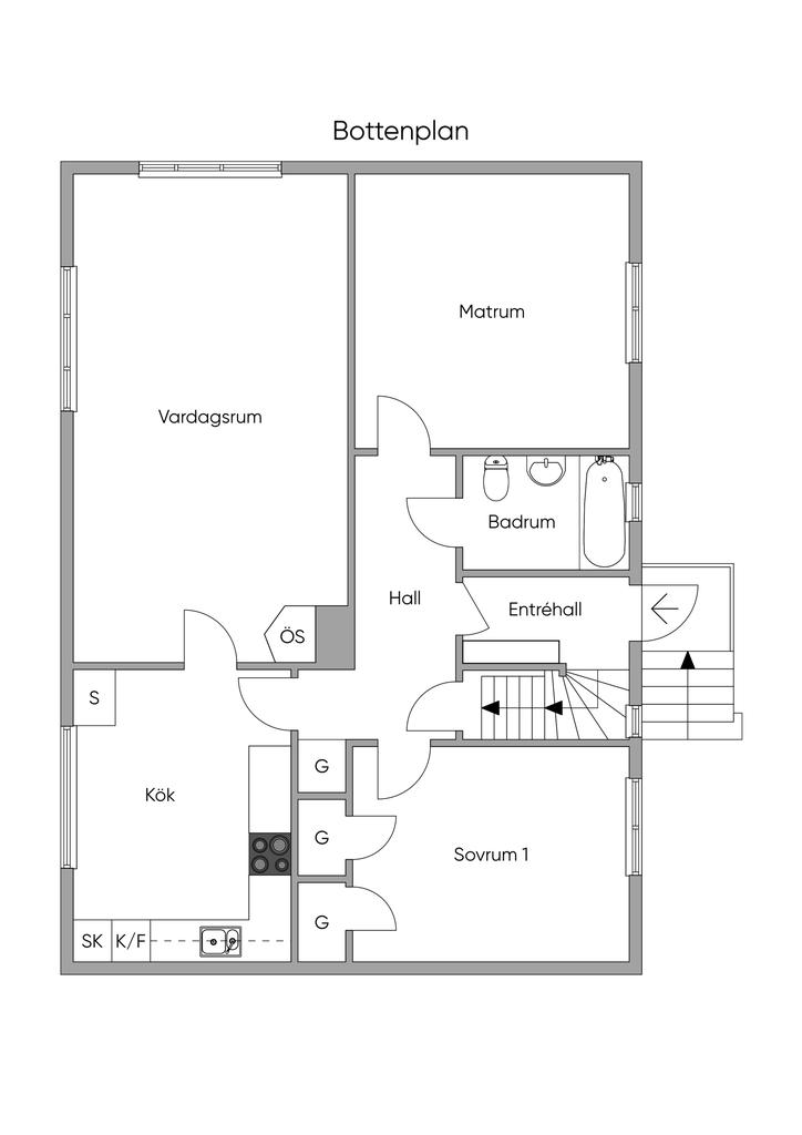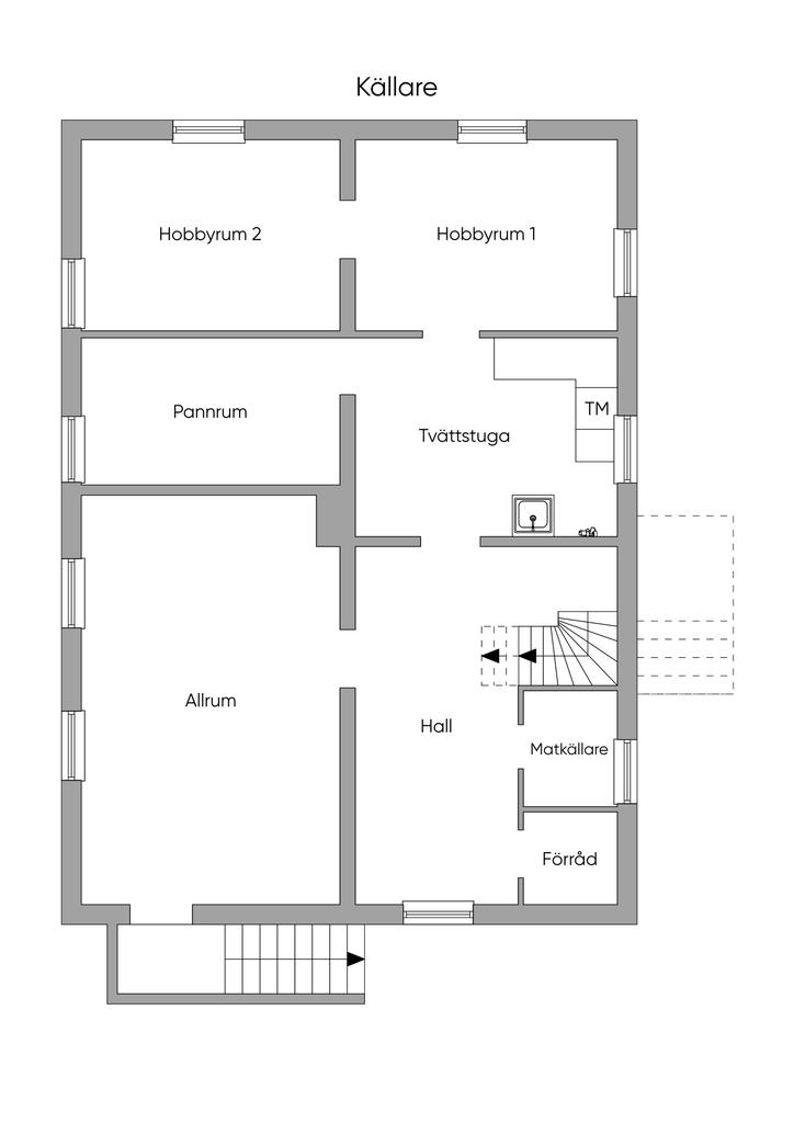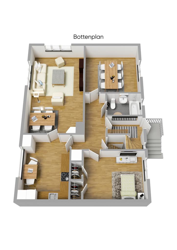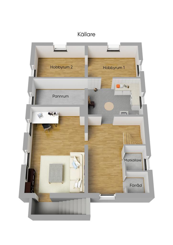 1-plansvilla med inredd källare och inredd vind