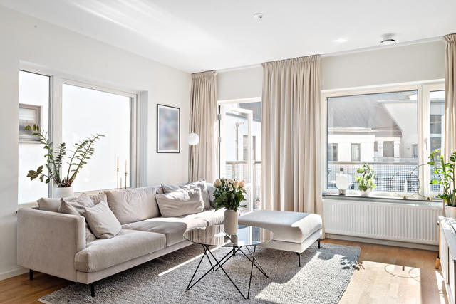 Stor hörntrea med underbar gårdsvänd balkong i västläge