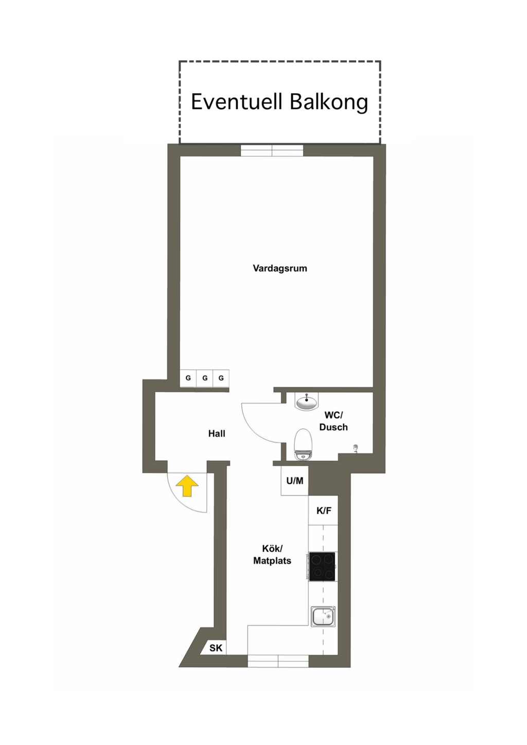 Välplanerad etta med attraktivt läge!