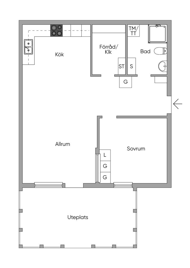 Markplanslägenhet i fint skick och med stensatt uteplats