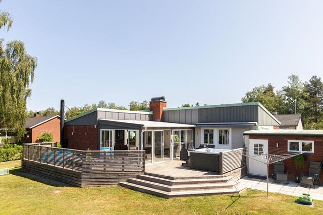 Tegelvilla med öppen modern planlösning och härliga uteplatser