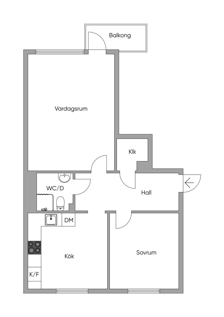 Rymlig och ljus tvåa med solig balkong i centrala Nyköping.