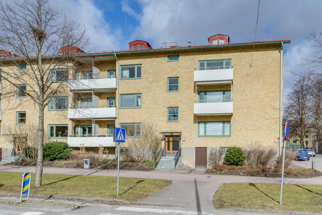 Trea två trappor upp i huset på Bögatan 50B!