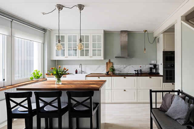 Fantastiska sällskapsytor med kök, vardagsrum och matplats i öppen harmoni mot solig baksida!