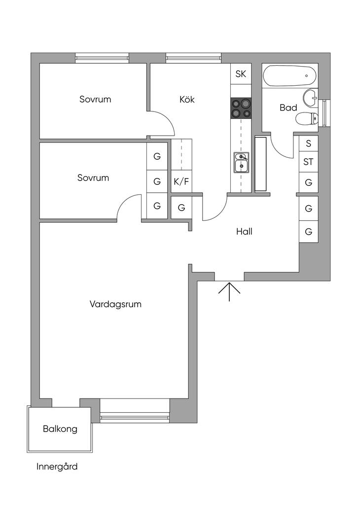 Fin 2,5:a med fantastisk balkong med unikt läge i byggnaden