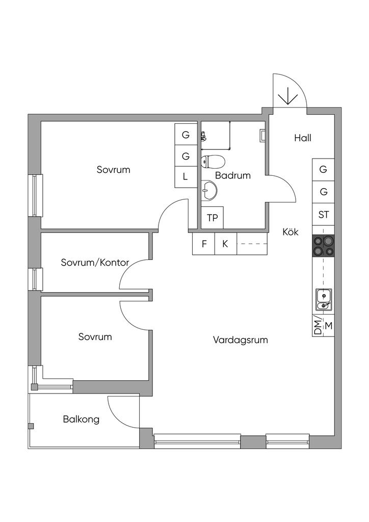 Social och stilrent 3,5:a på oslagbart hörnläge