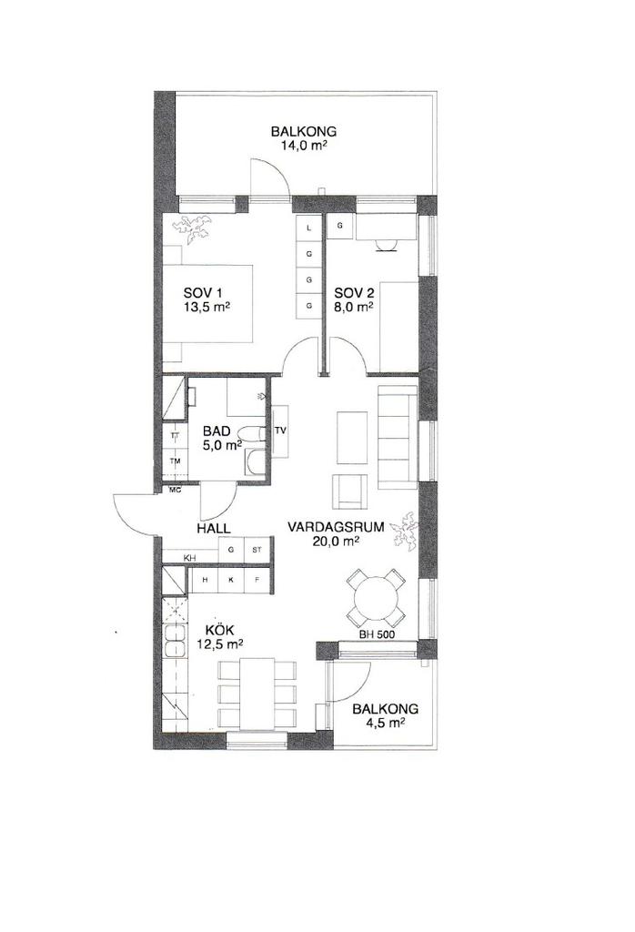Optimalt planerad trea med dubbla balkonger!