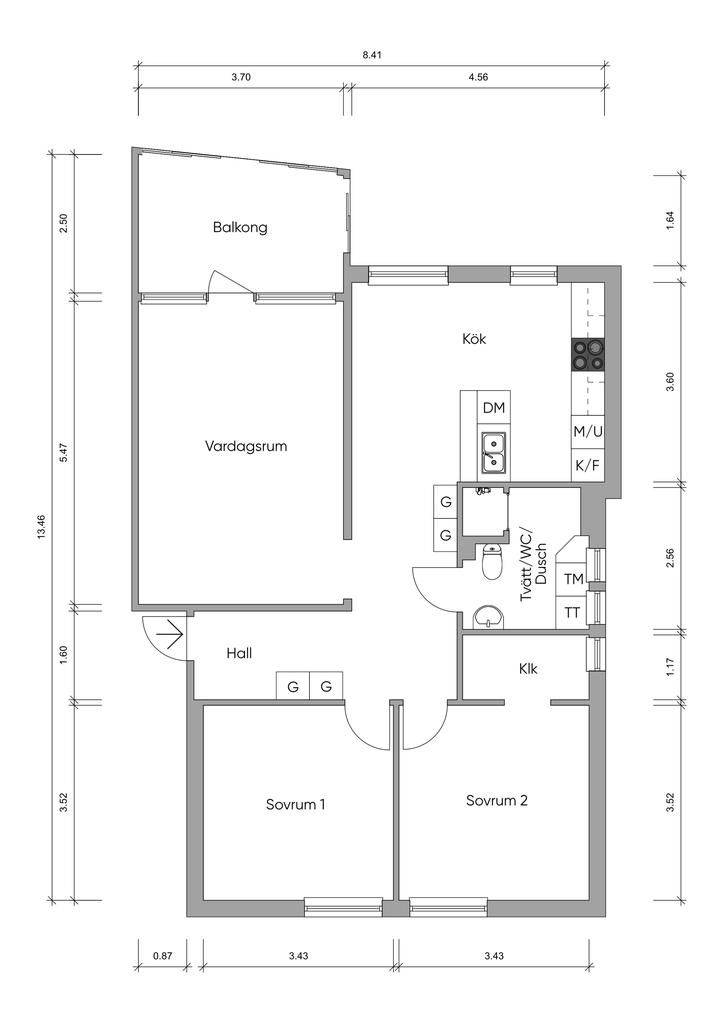 • Rum: 3, varav 2 sovrum
