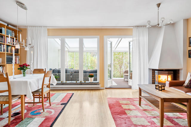 Väl underhållet radhus med uterum, braskamin och garage i centrala Kungsbacka