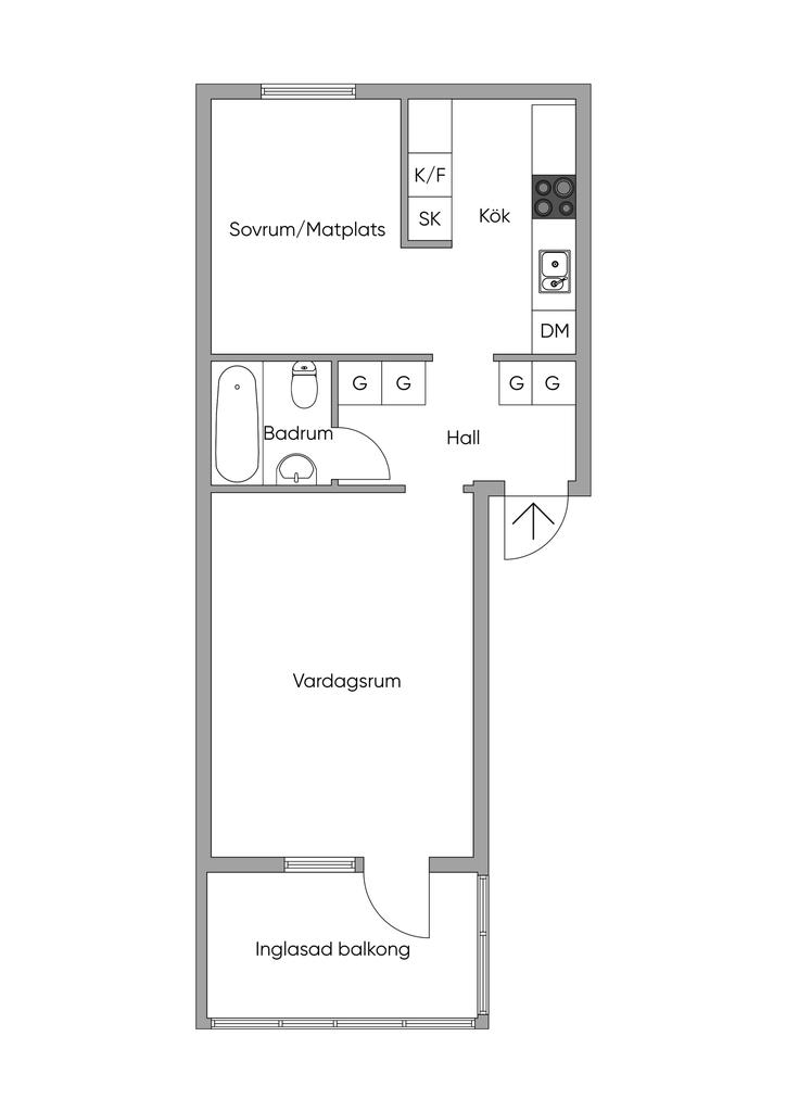 Fräsch och välplanerad 1:a om 44,5 m² med stor inglasad balkong!