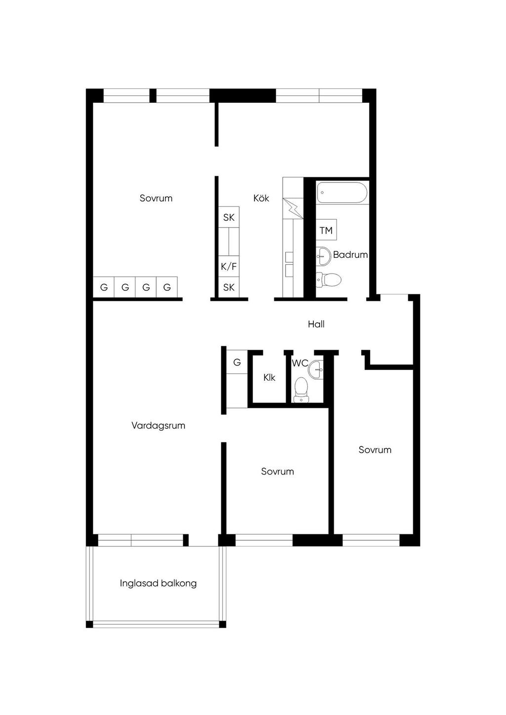 Fyra rum och kök med inglasad balkong!