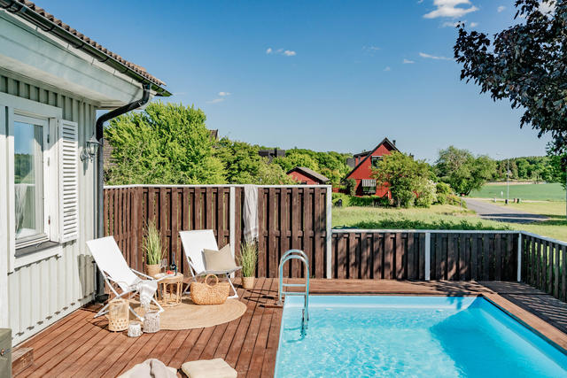 Trivsam enplansvilla på hörntomt - Uppvärmd pool, vidsträckt vy, sjöglimt samt solceller på taket!