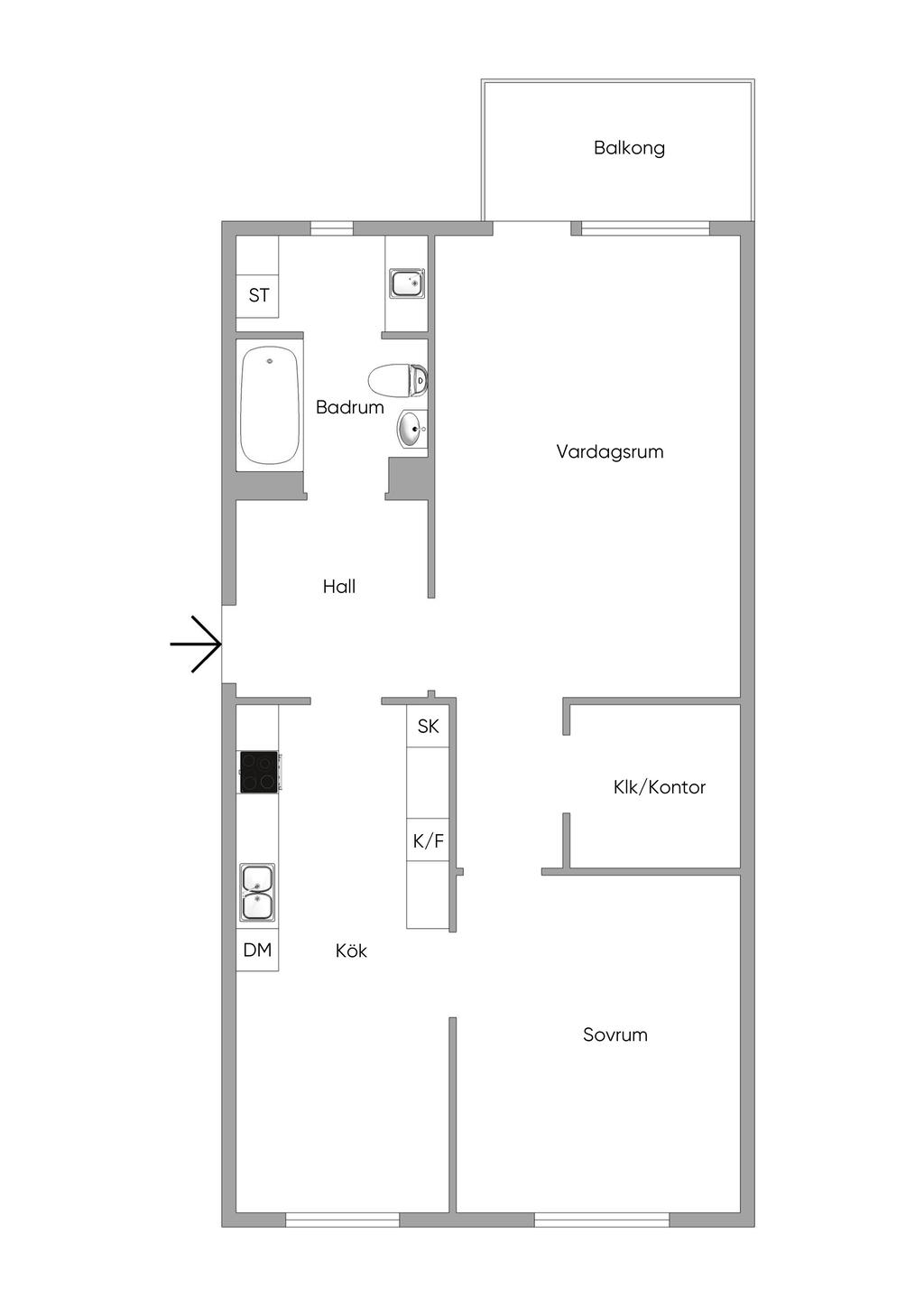 Välplanerad tvåa med ett lugnt läge i Stampen med balkong och hiss!