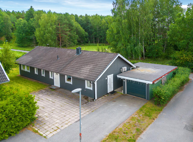 Enplans hus i toppskick med hörntomt och garage i Västerhaninge