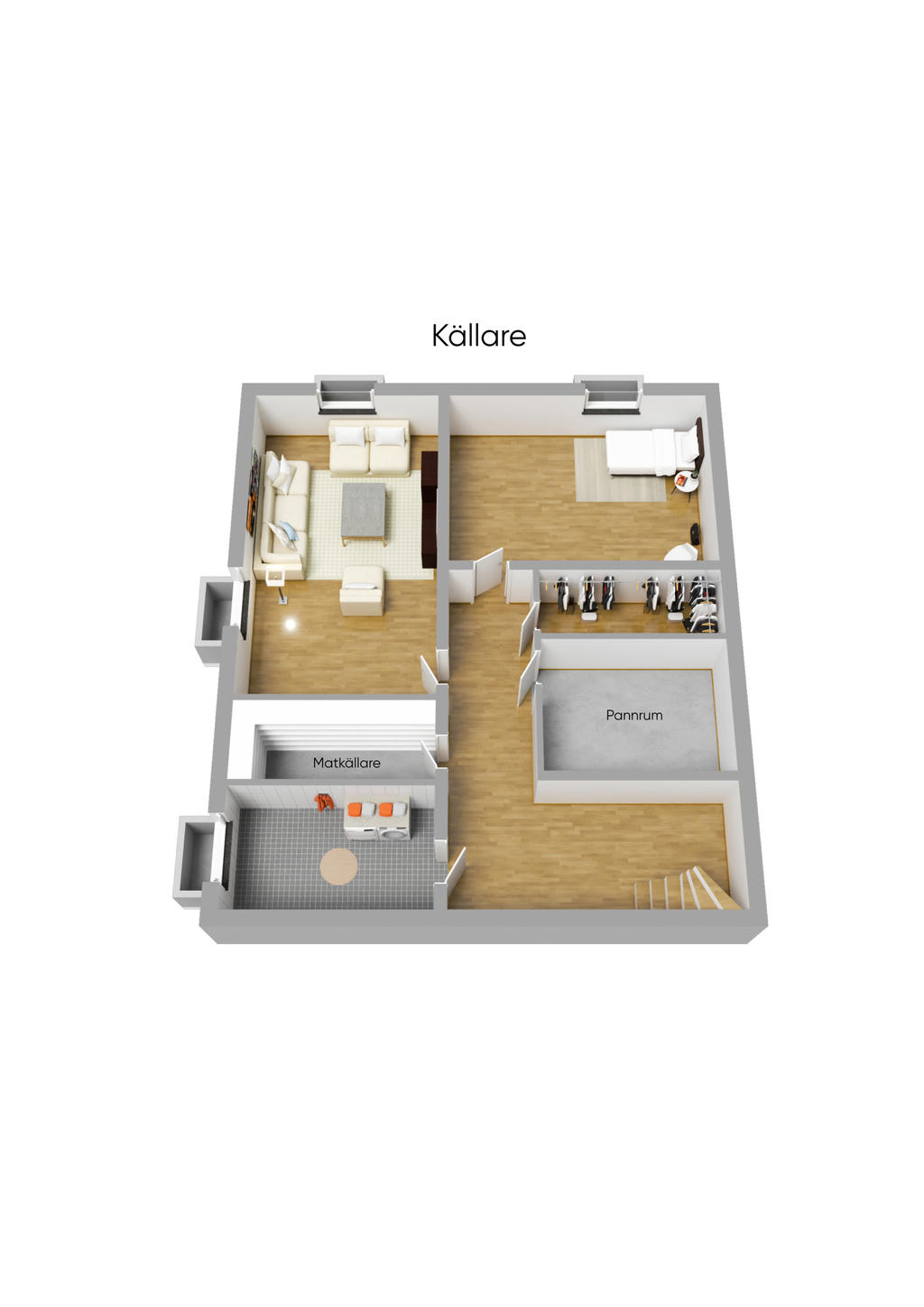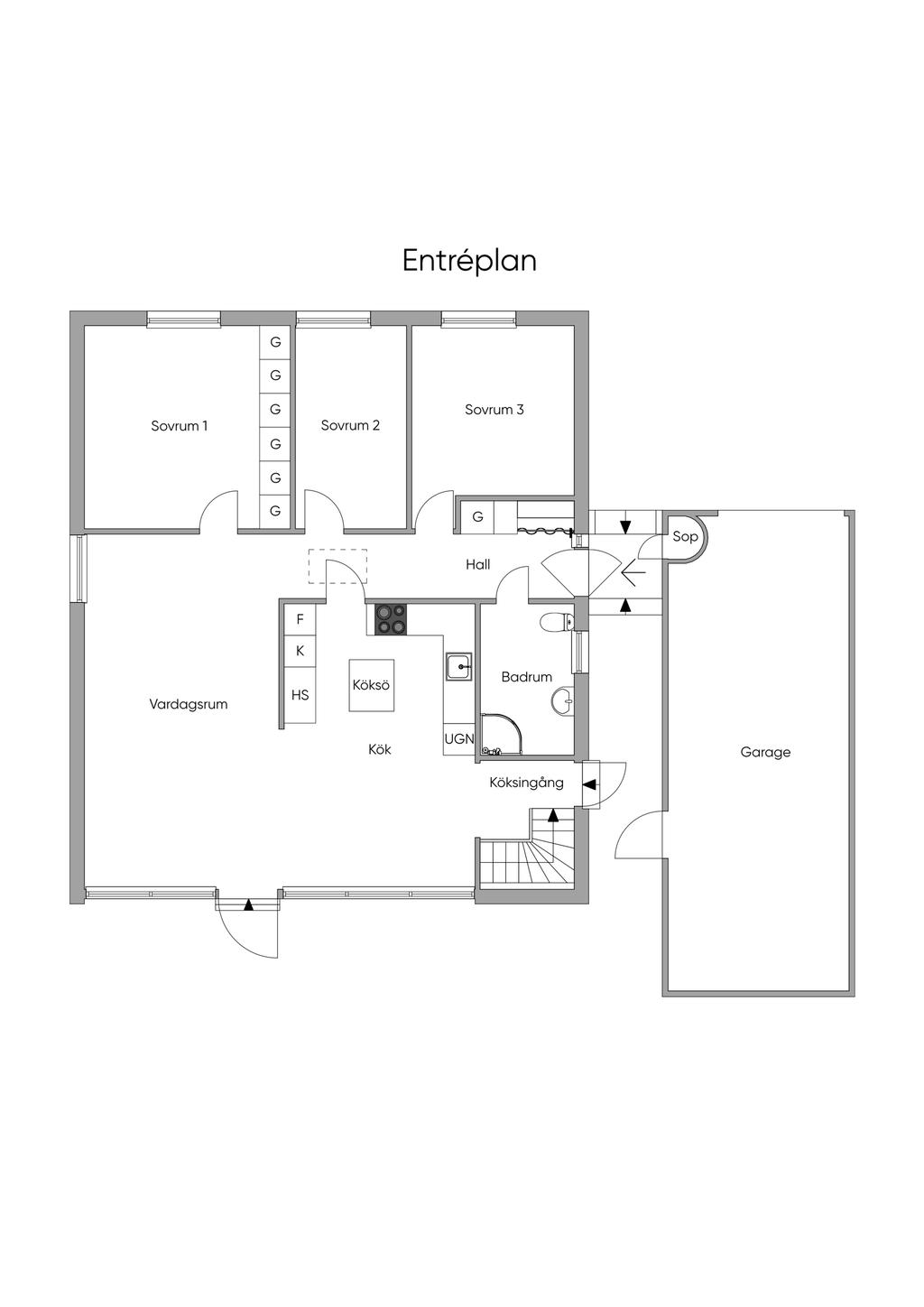 1-plansvilla med inredd källare på Väster