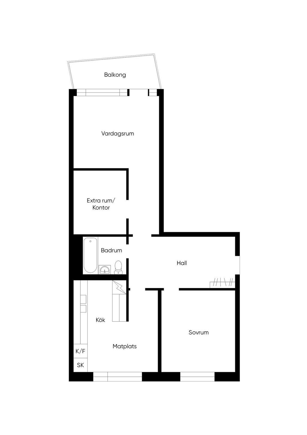 Ljus, modern och väldisponerad tvåa med balkong