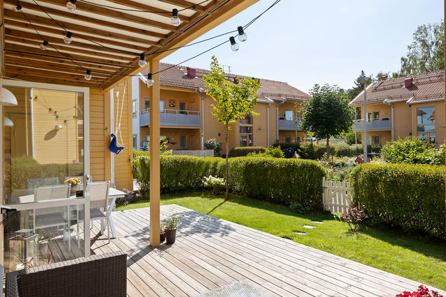 Sjönära boende i bostadsrätt med radhuskaraktär och trevlig utsikt över havet.
