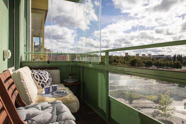 Genomgående planlösning i toppskick med balkong i högt och fritt sydvästläge