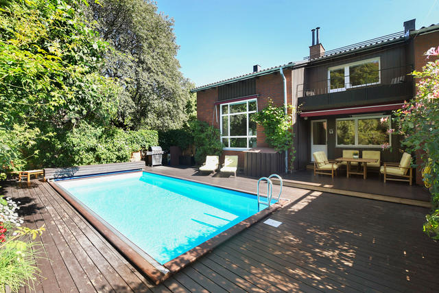 Unikt tillfälle - Centralt gavelradhus med pool - Genomgående fint skick - Öppna spisar