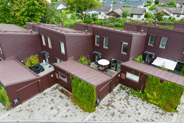 Atriumradhus med modern arkitektur i omtyckt villaområde!