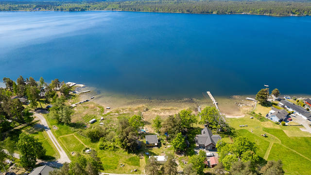 Unikt belägen strandtomt om hela 1506 m² med brygga & atterfallshus i attraktiva Sandebo