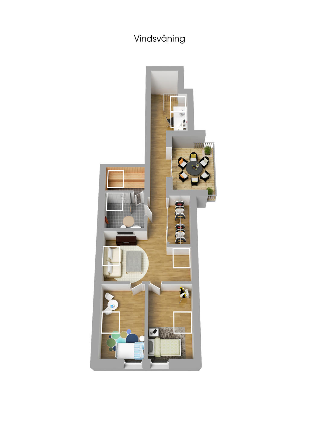 Vindsvåning i etage med balkong, terrass och magisk sjöutsikt!