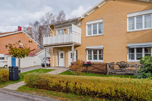 Trea i markplan med uterum, två altaner och trädgårdstäppa