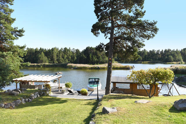 Enplansvilla med strandtomt, dubbelgarage och härlig brygganläggning!