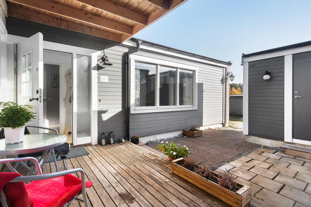 Tillbyggt atriumradhus i ett plan med utmärkt centralt läge i Stenhamra!