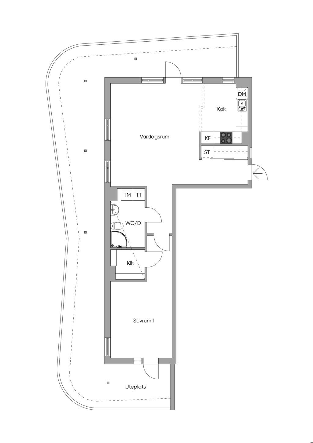 Stor 2:a med underbar uteplats om hela 62 kvm som sträcker sig runt hela lägenheten.
