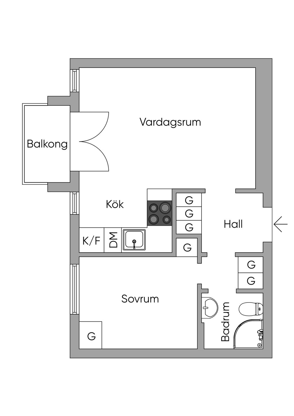 Balkong i högt söderläge och sovrum med plats för dubbelsäng!