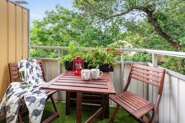 Insynsskyddad 2:a högst upp i huset med balkong i söderläge som erbjuder många soltimmar