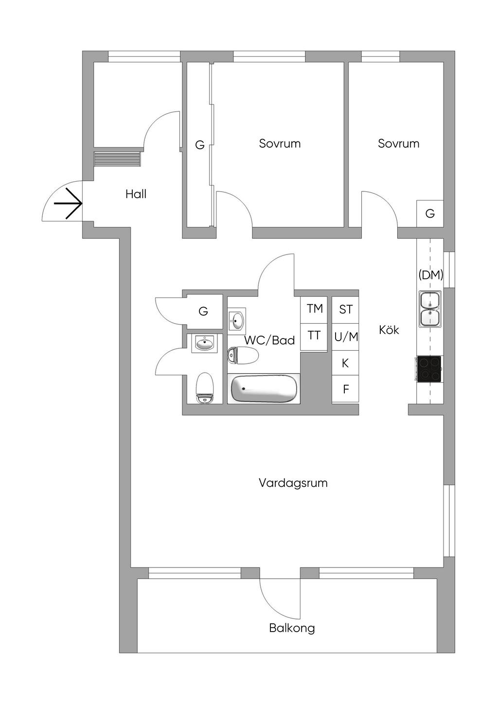 Rymlig 3,5:a på 87 kvm, högst upp i huset
