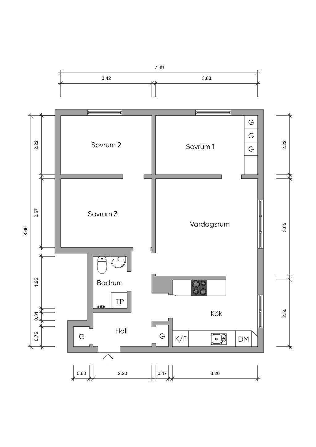 Maximalt välplanerad fyra med tre bra sovrum. Bästa adressen på nedre Gärdet med närhet till allt.