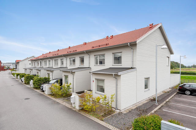 Smakfullt gavelradhus i bostadsrättsform med parkeringsplats, stor altan och gräsyta!
